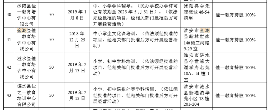 佳一教育注册地为淮安,其第三大股东是淮安平衡创业投资中心(平衡创投),平衡创投的最大股东是淮安市人民政府。这也意味着,佳一教育是当地政府扶持企业。