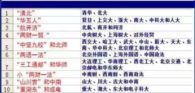 一、“清北”(或“北清”)——清华、北大