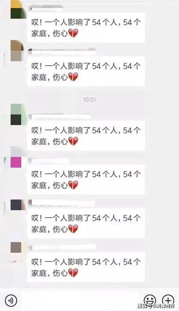 还有之前的蒋老师由于觉得一个孩子的母亲在殡仪馆工作阴气重,便孤立其孩子且公开辱骂此家长。此人被停职后,不少家长还阴阳怪气的刷屏“哎,一个人影响了54个人,影响了54个家庭,伤心”。
