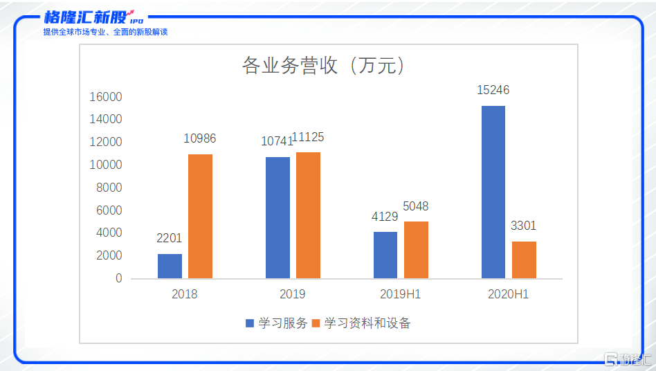 洪恩教育已经从线下转型为线上。据招股书披露,2018年、2019年、2020年上半年线上学习服务收入分别为2201万元、1.07亿元、1.52亿元,占总收入比例分别为16.69%、49.12%、82.20%。而线下业务早在疫情影响之前,就表现出增长停滞,2019年线下学习资料和设备收入增长仅1.27%。这表明了洪恩已经从一家硬件公司转型为在线教育企业。