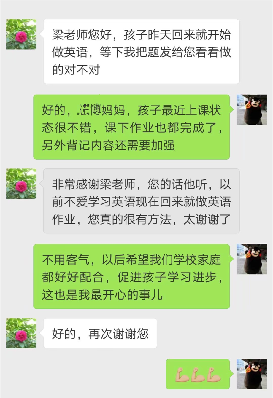 通过自己的勤奋和梁老师的教导,这位学生成绩取得了很大的进步,性格也变得更加温和。期末考试成绩出来后,孩子妈妈给梁老师发消息,告诉她孩子考到了125分。