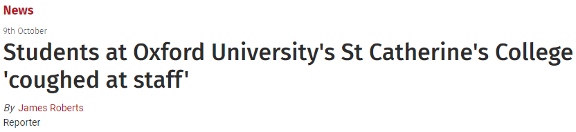 最近,牛津大学一学院发生学生故意向教职工咳嗽的事。