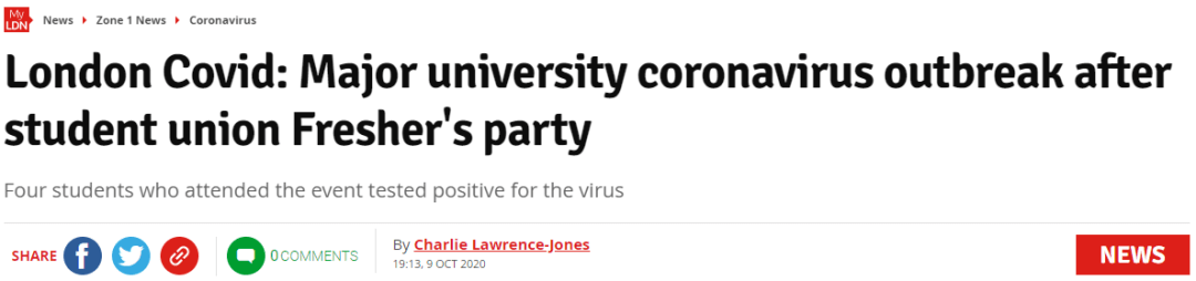 就在最近,伦敦国王学院King's College London爆发新冠,4名参加9月25日新生活动的学生确诊。