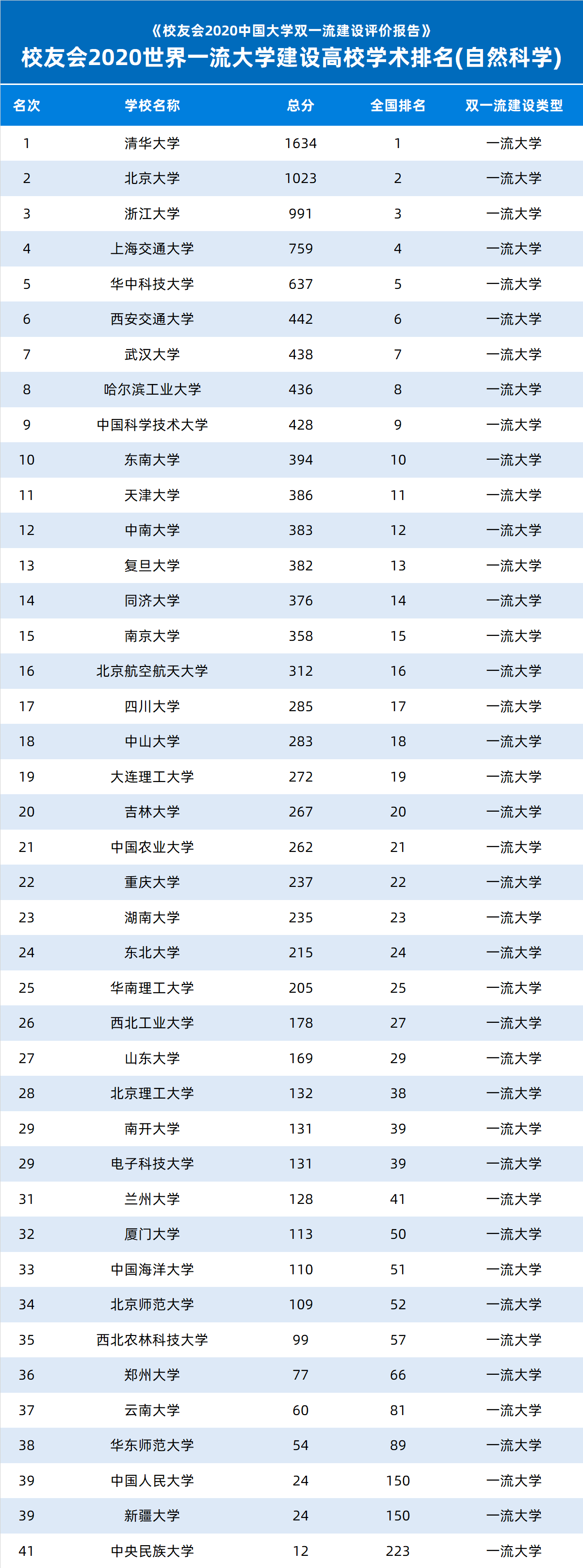 清华大学雄居2020世界一流大学建设高校学术排名(自然科学)榜首,浙江大学挺进前3甲