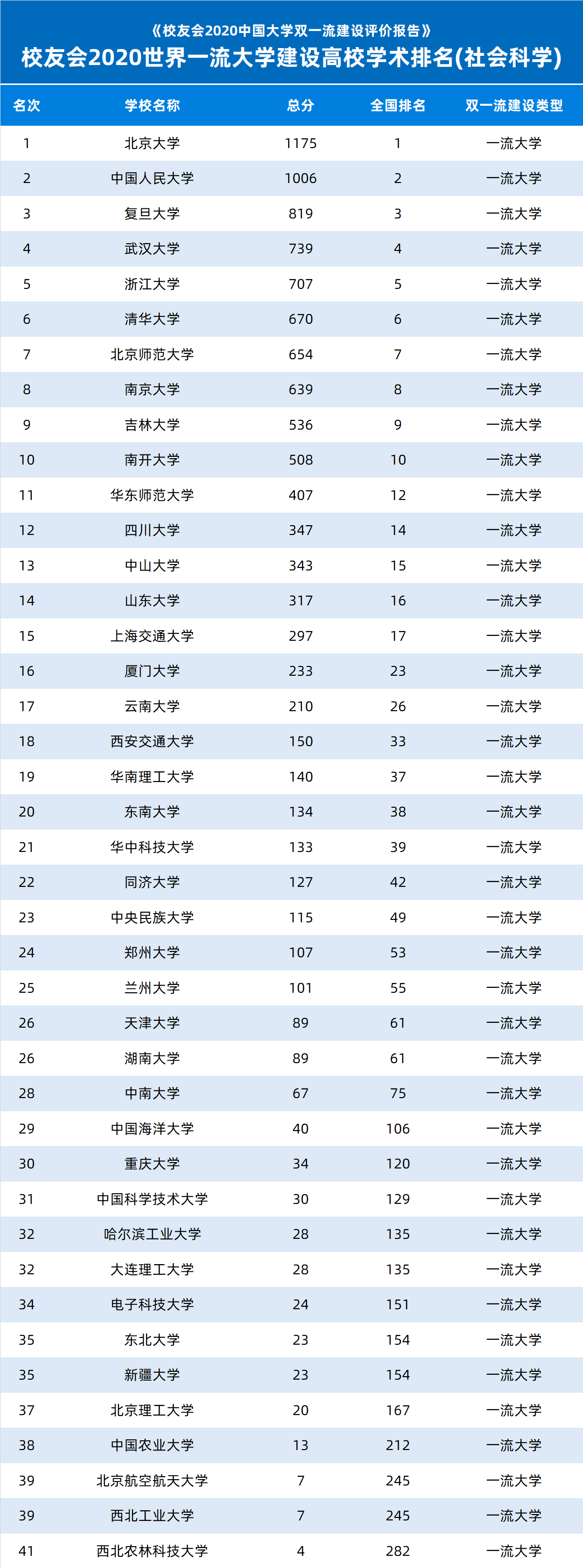 北京大学问鼎2020世界一流大学建设高校学术排名(社会科学)第1,中国人民大学勇夺全国第2