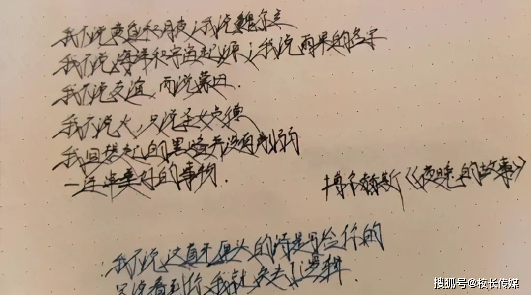 以前小的时候为了赶进度或者补作业,我们会想很多招,比如有的将几支笔捆绑在一起,这样可以一次写出很多字,对像一个字罚写100遍的情况非常有效果,也有学生会把字写得特别快,变成以上这种潦草的草书,可是现在却有很多学生专门以写这样的字体为荣。