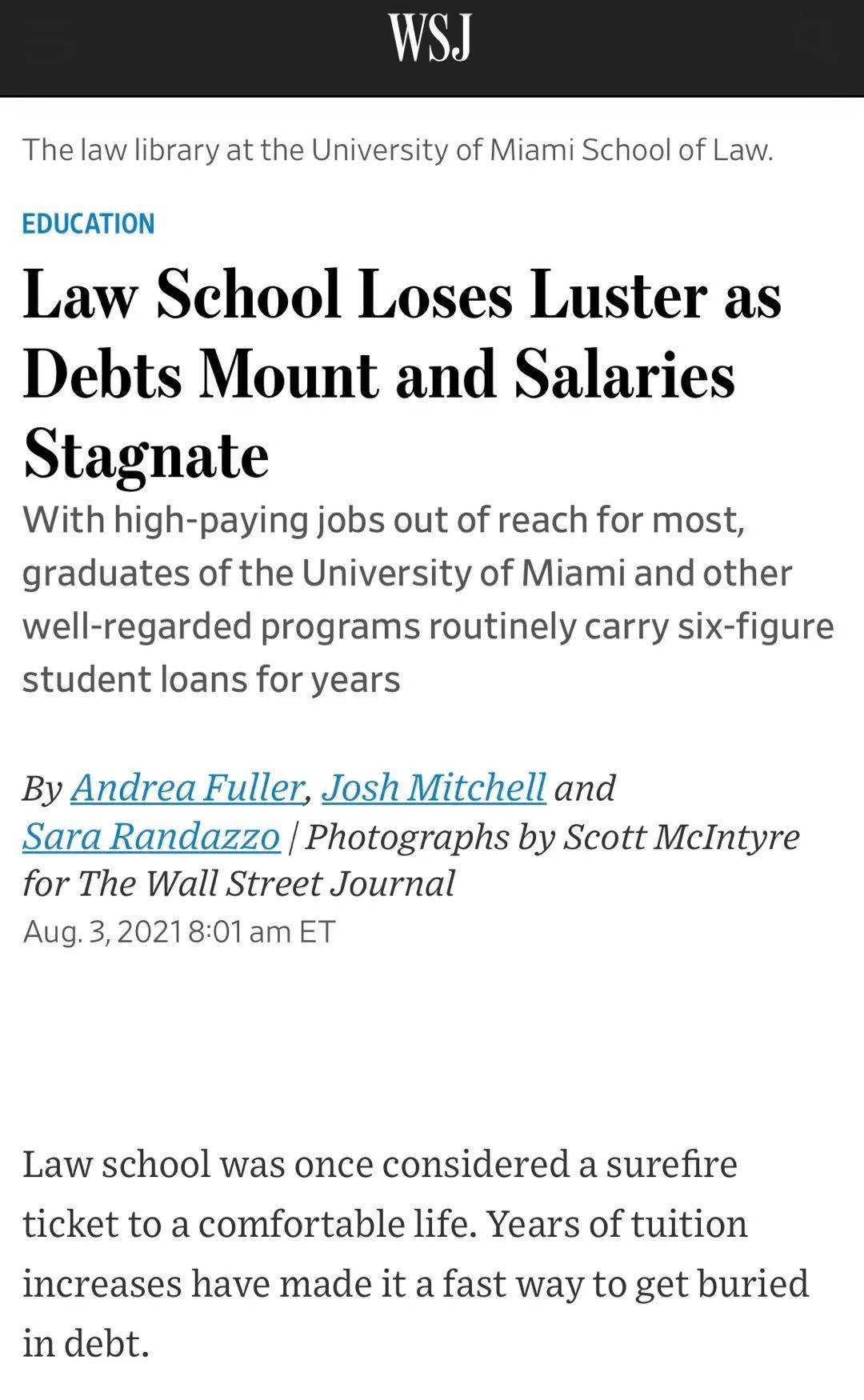 报道指出,在这个时代,法学专业毕业生很难在经过辛苦付出后直抵高等法院的圣堂,与此同时,庞大的助学贷款和低额的薪水使他们在毕业多年后生活借据。