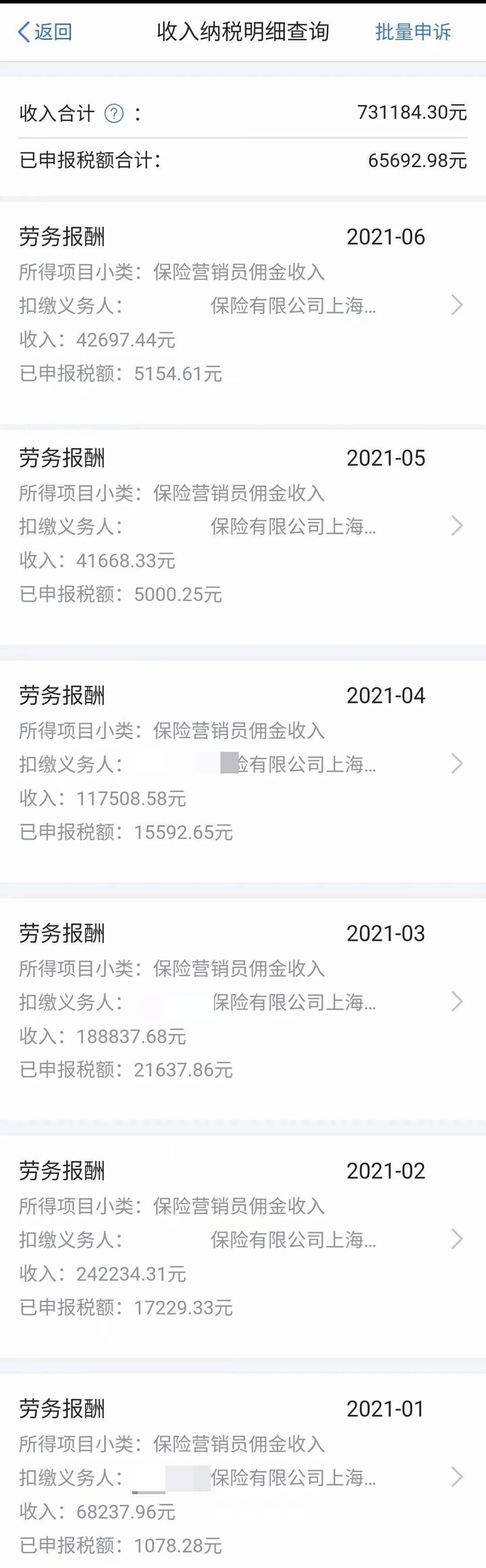 某保险从业者提供的月工资收入单,该公司目前正以高薪、高价值感为由头大力招募海归。(已隐藏个人信息)