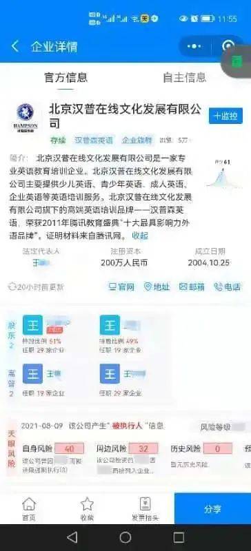 也有一些投诉的,联系不到他那边,也解决不了,所以我们这边的只能行使我们的权力,就把他这个公司列入经营异常。先问一下教委那边知不知道他那联系方式?