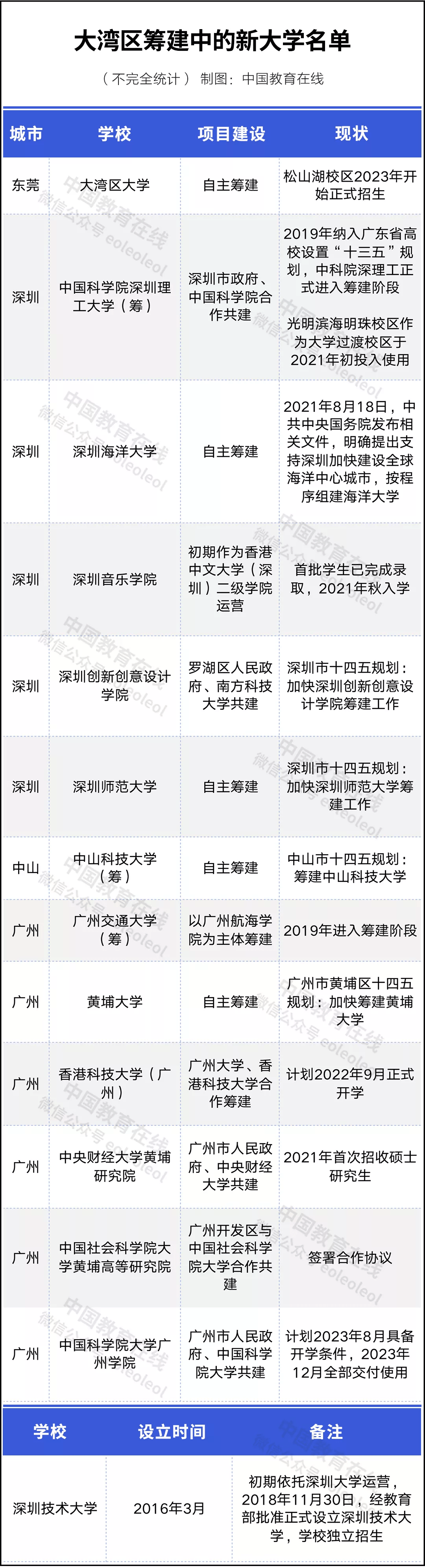 除深圳、广州外,东莞、中山、佛山等地在高等教育方面也有布局。