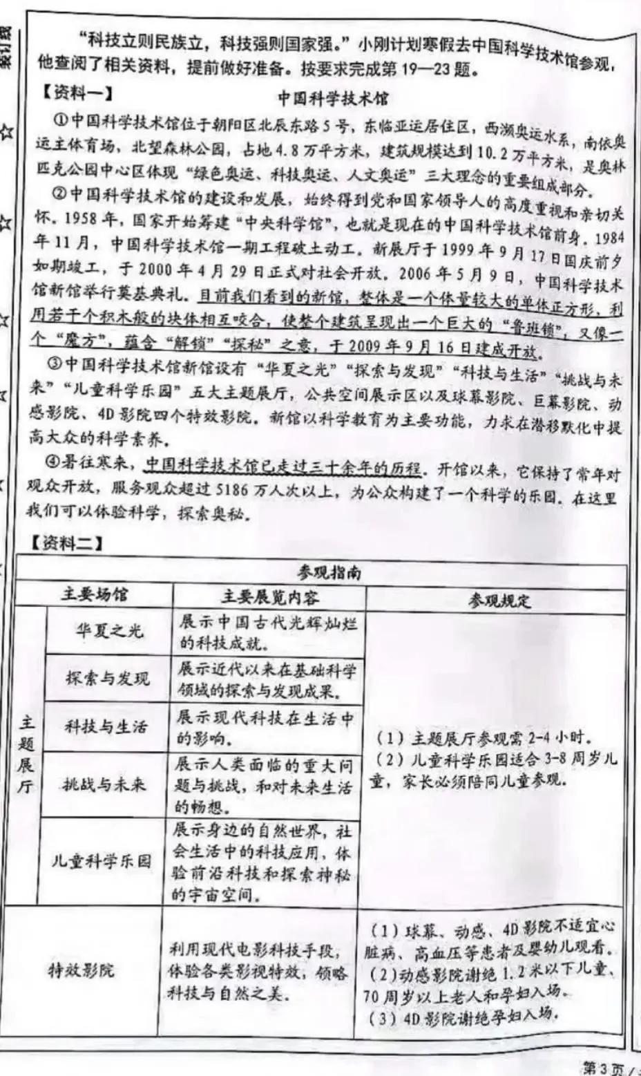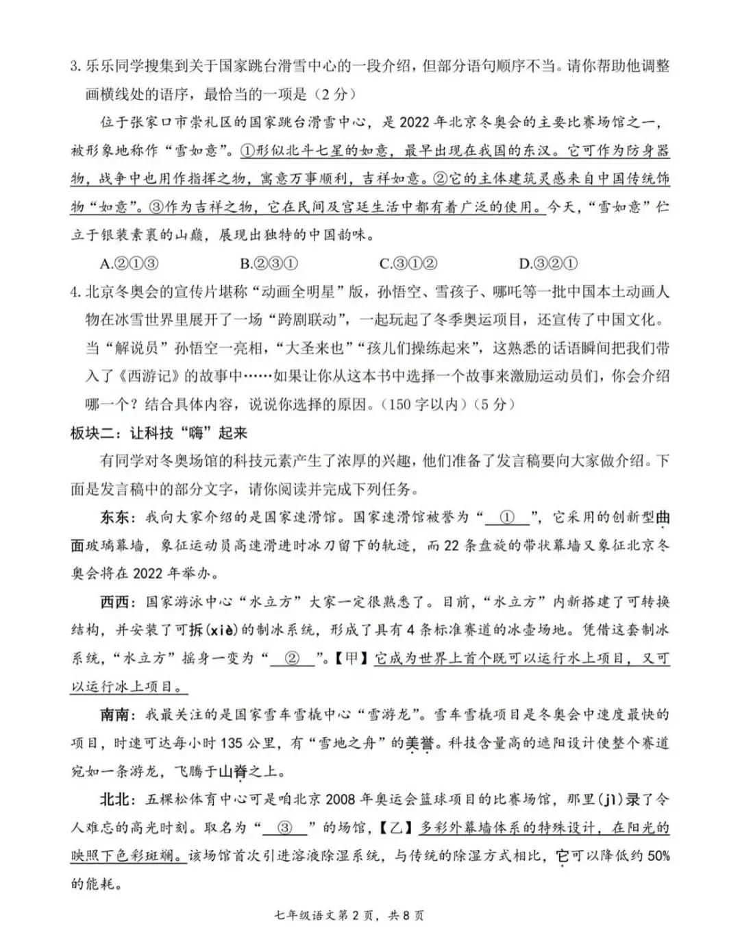 像东城区3年级的试卷,有神州十三号天宫课堂、北京冬奥会,4年级有天问一号和阅兵式。