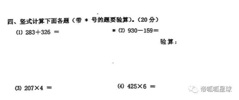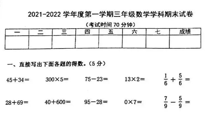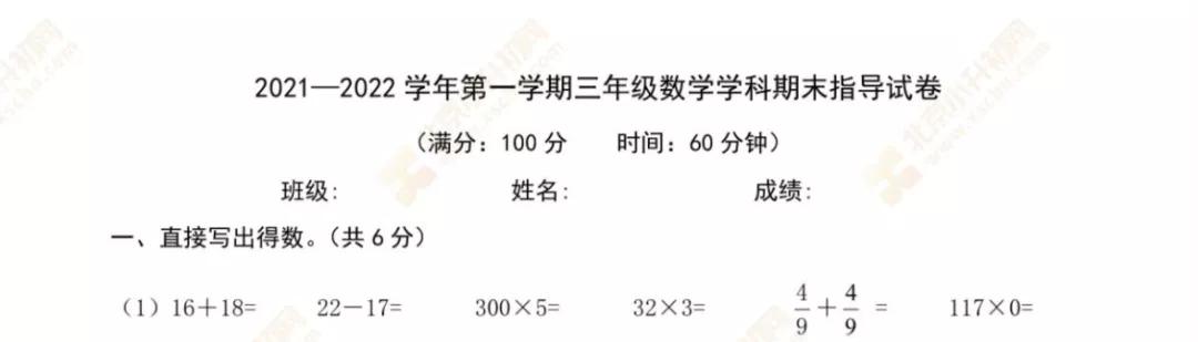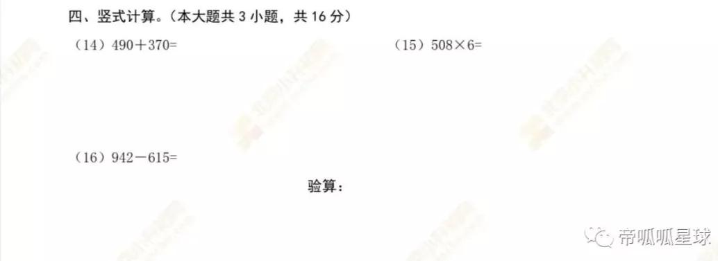 拿三年级的数学试卷来举例。东城区三年级的数学试卷,纯计算题一共就14道,占25分。