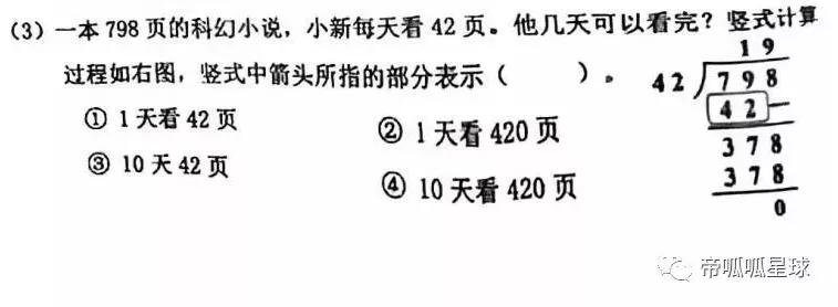 再比如4年级有一道题,题目不再是让孩子机械地列竖式算个答案,而是问孩子竖式中的某一步,代表的含义是什么,机械列竖式刷题的孩子,这道题就可能回答不出来。