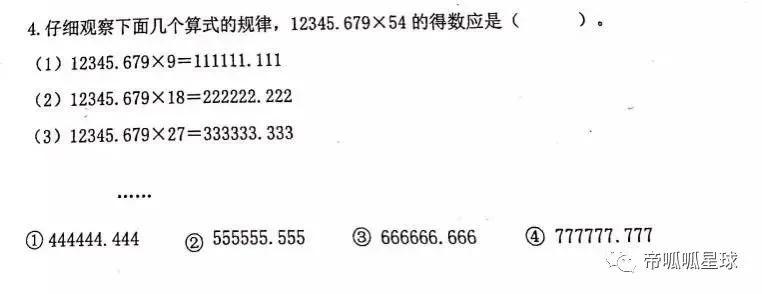 就是前文所说的小学数学三大抓手之一:数学思想,思考问题的方法。在小学主要有两个思想:正向归纳、逆向分析。像前面5年级这道题,就是让孩子通过观察归纳一个规律,然后推导答案: