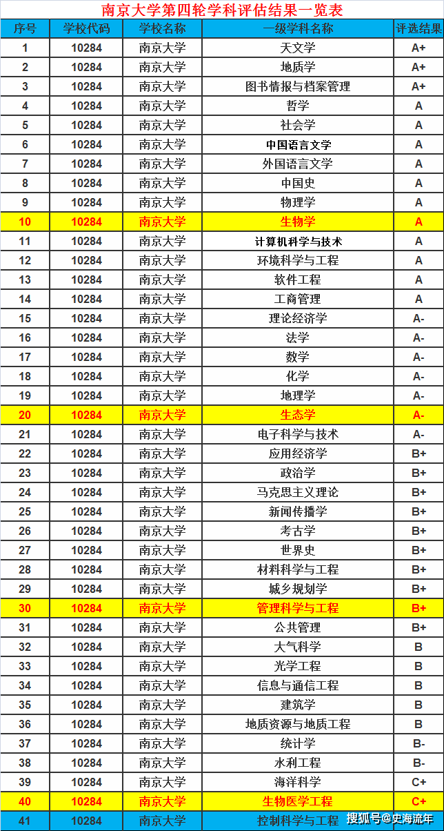 南京大学在全国高校第四轮学科评估中,共有3个学科获得A+类学科,共有11个学科获得A类学科,共有7个学科获得A-类学科,A类学科达到了21个。排名全国高校第六位,这个实力有目共睹,真正的实力派。