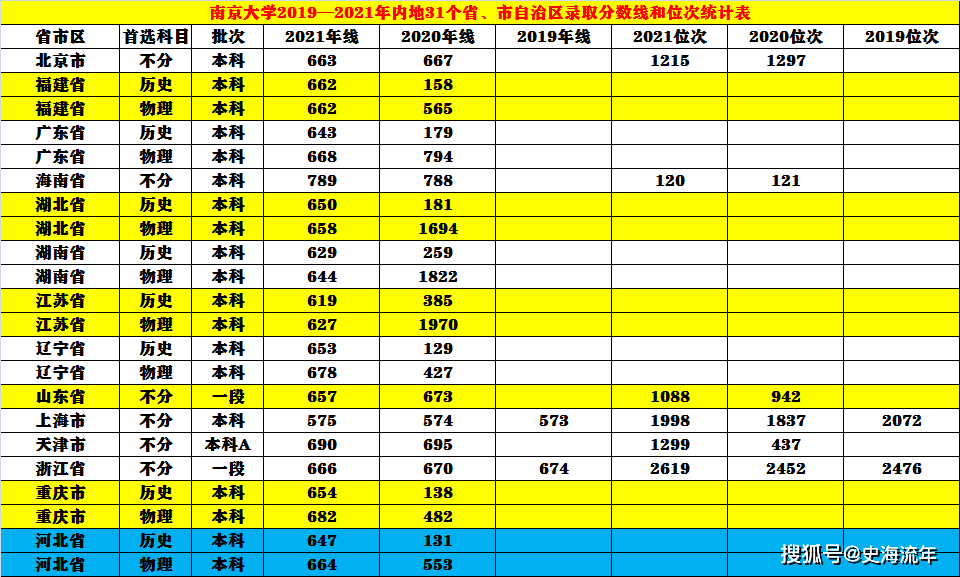 3、2019-2021年,南京大学在内地31个省、市、自治区的录取分数线情况
